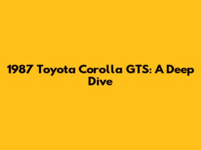 1987 Toyota Corolla GTS: A Deep Dive