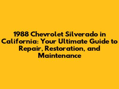 1988 Silverado In California: Repair, Restoration & Maintenance