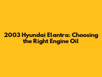 2003 Hyundai Elantra: Choosing The Right Engine Oil