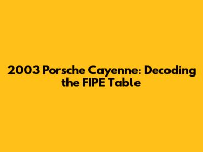 Alright, let's get into the nitty-gritty of the FIPE Table and how it relates to the 2003 Porsche Cayenne. Imagine you're eyeing a used Cayenne from 2003. You'll want to check the FIPE Table to get an idea of its market value. The table lists the average prices for various versions of the car, which helps you understand the price range you should expect. This is super helpful because it gives you a solid baseline for your negotiations. Think of the FIPE Table as your starting point. It's the reference that helps you understand the general value of the 2003 Porsche Cayenne. However, the actual price can fluctuate based on specific characteristics of the car you are interested in. Remember that the FIPE Table reflects average prices, and your individual car's value may be higher or lower depending on its condition. For example, a Cayenne that has been meticulously maintained, with low mileage and no major issues, could be worth more than a car with a spotty maintenance record.