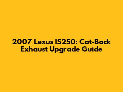 2007 Lexus IS250: Cat-Back Exhaust Upgrade Guide