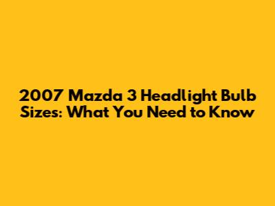 2007 Mazda 3 Headlight Bulb Sizes: A Quick Guide