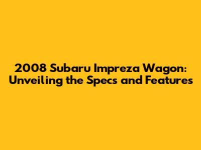 2008 Subaru Impreza Wagon: Specs, Features, And More!