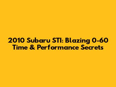2010 Subaru STI: Blazing 0-60 Time & Performance Secrets