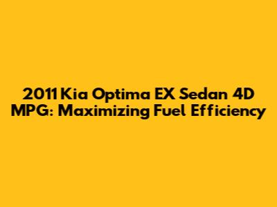 The 2011 Kia Optima EX Sedan 4D is a popular choice for drivers seeking a balance of style, comfort, and fuel efficiency. Understanding the MPG (miles per gallon) of this vehicle is crucial for potential buyers and current owners alike. In this article, we'll dive deep into the fuel economy of the 2011 Kia Optima EX, exploring its EPA ratings, factors that can affect its MPG, and tips for maximizing your fuel efficiency. Let's explore everything you need to know to get the most out of your 2011 Kia Optima EX Sedan 4D.
