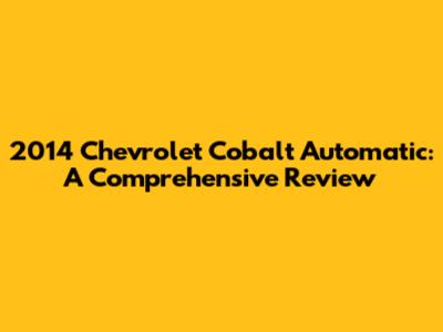 2014 Chevy Cobalt Automatic: A Comprehensive Review