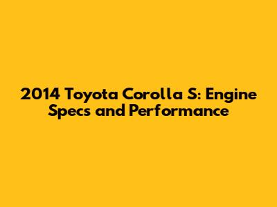 2014 Toyota Corolla S: Engine Specs And Performance