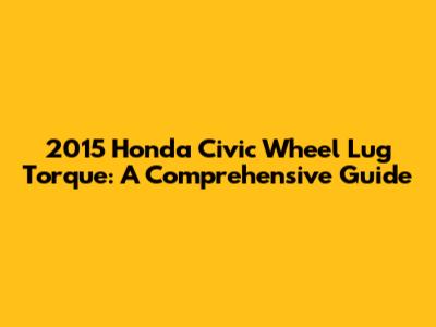 Hey guys! Ever wondered about the correct wheel lug torque for your 2015 Honda Civic? Ensuring your wheels are properly secured is super important for your safety and the longevity of your vehicle. This guide will walk you through everything you need to know about the correct torque specifications, the tools you'll need, and the step-by-step process to get the job done right. Let's dive in!
