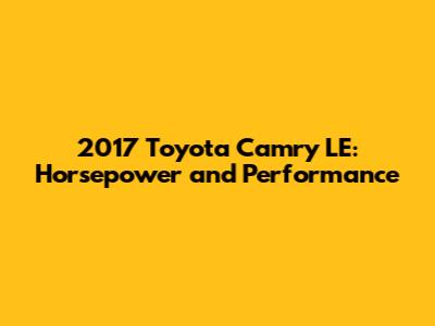 Hey guys! Let's dive into the 2017 Toyota Camry LE and talk about what really makes it go – its horsepower and overall performance. If you're considering getting one of these or you're just curious about the engine specs, you're in the right place. We'll break down everything you need to know without getting too technical. Think of this as a friendly chat about what this reliable sedan brings to the table.