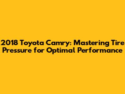 2018 Toyota Camry: Mastering Tire Pressure For Optimal Performance