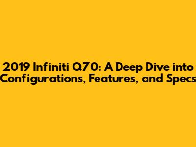 Hey there, gearheads! Let's dive into the 2019 Infiniti Q70, a luxury sedan that's all about blending performance, comfort, and head-turning style. This guide will walk you through the various configurations, trim levels, standout features, and specifications that made the 2019 Q70 a popular choice. So, buckle up, and let's explore what this sleek ride has to offer. We're going to break down everything from the engine options to the tech inside, so you know exactly what you're getting. Whether you're considering buying one or just curious, this is the place to be.