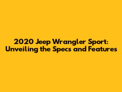 2020 Jeep Wrangler Sport: Specs, Features, And More!