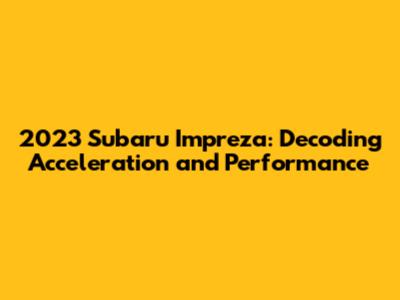 Alright, gearheads! Let's dive deep into the heart of the 2023 Subaru Impreza and dissect its acceleration capabilities. We're talking about more than just numbers here, guys. We'll explore the real-world driving experience, the engine's performance, and what makes the Impreza tick. Whether you're a seasoned car enthusiast or just starting to explore the world of vehicles, this article is for you. We'll break down everything in a way that's easy to understand, focusing on the Impreza's acceleration, its handling, and what it brings to the table.