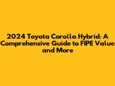 2024 Toyota Corolla Hybrid: Price, Specs, & FIPE Guide