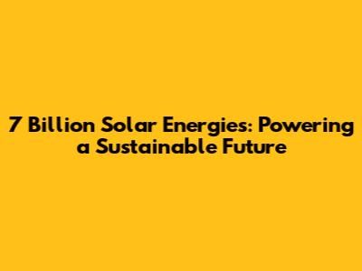7 Billion Solar Energies: Powering A Sustainable Future