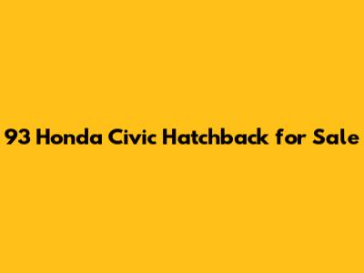 93 Honda Civic Hatchback For Sale: Find Yours Today!