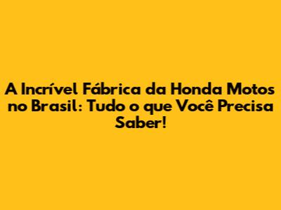 A Incrível Fábrica Da Honda Motos No Brasil: Tudo O Que Você Precisa Saber!