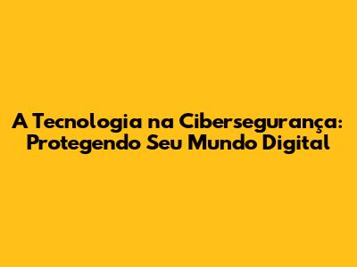 A Tecnologia Na Cibersegurança: Protegendo Seu Mundo Digital
