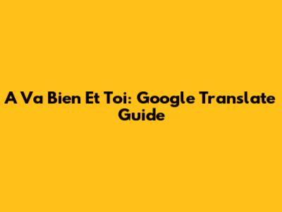A Va Bien Et Toi: Google Translate Guide
