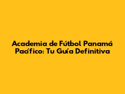 Academia De Fútbol Panamá Pacífico: Guía Completa