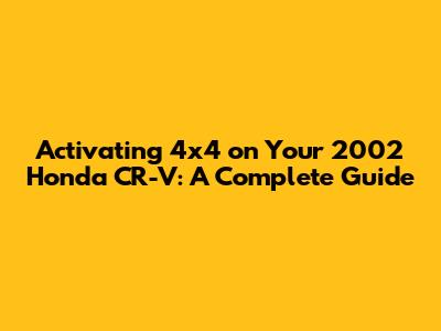 Activating 4x4 On Your 2002 Honda CR-V: A Complete Guide