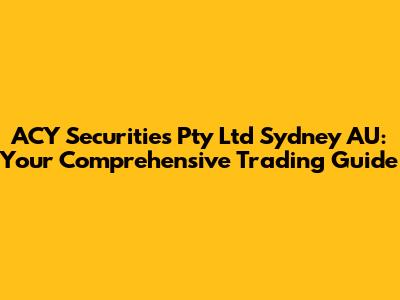 Hey guys, let's dive into the world of ACY Securities Pty Ltd Sydney AU! If you're looking to trade in the financial markets, you've probably come across this name. ACY Securities is a brokerage firm based in Sydney, Australia, and they offer a range of services to help you trade various financial instruments. In this comprehensive guide, we'll break down everything you need to know about ACY Securities, including what they offer, how their platform works, the fees involved, and what their overall reputation is like. Whether you're a seasoned trader or just starting out, this review is designed to give you a clear and insightful look at ACY Securities.
