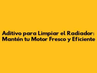 Aditivo Para Limpiar El Radiador: Guía Completa Y Efectiva