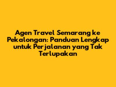 Agen Travel Semarang Ke Pekalongan: Solusi Perjalanan Mudah & Nyaman