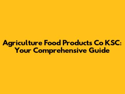Agriculture Food Products Co KSC: Your Comprehensive Guide