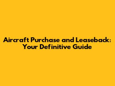 Aircraft Purchase And Leaseback: Your Definitive Guide