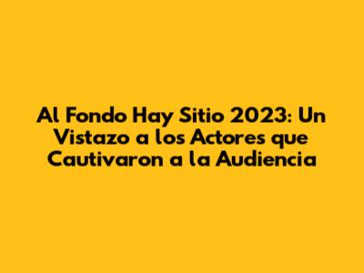 El 茅xito de "Al Fondo Hay Sitio" en 2023 no se puede entender sin el impacto de sus actores. Su talento, dedicaci贸n y compromiso fueron fundamentales para mantener la popularidad de la serie y conectar con el p煤blico. El p煤blico es el mayor cr铆tico y la popularidad de la serie se debe en gran medida a la conexi贸n que los actores han logrado crear con 茅l. Los actores de AFHS 2023 son verdaderos profesionales que han sabido ganarse el cari帽o y la admiraci贸n del p煤blico. El impacto de los actores en la popularidad de la serie es innegable.