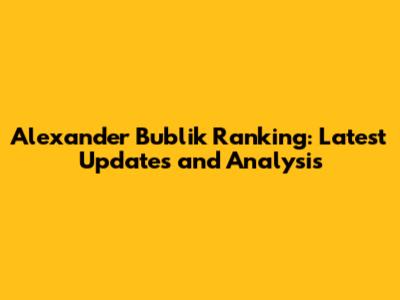 Alexander Bublik Ranking: Latest Updates And Analysis