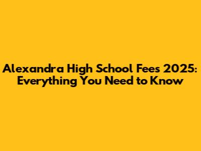 Alexandra High School Fees 2025: Everything You Need To Know