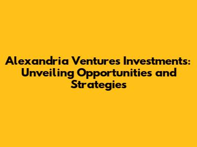 Alexandria Ventures: Investment Insights & Opportunities