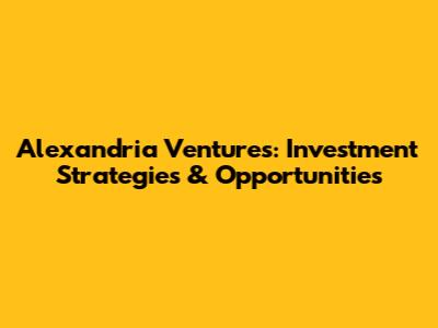 Alexandria Ventures: Investment Strategies & Opportunities