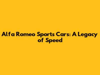 Alfa Romeo Sports Cars: A Legacy Of Speed