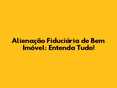 Alienação Fiduciária: Entenda Tudo Sobre!