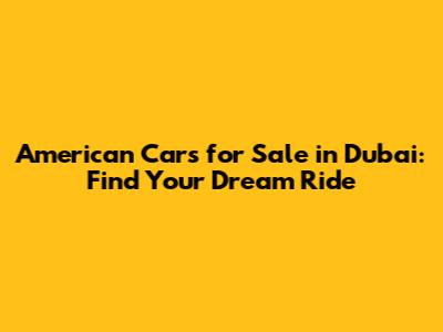 American Cars For Sale In Dubai: Find Your Dream Ride