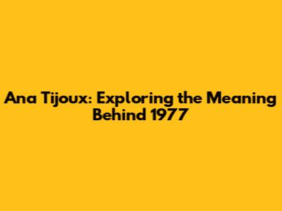 Hey guys! Ever heard of Ana Tijoux's killer track, '1977'? It's not just a catchy tune; it's a powerful statement wrapped in sick beats and Tijoux's signature lyrical prowess. If you're looking to dive deep into what makes this song so special, you've come to the right place. Let's break down the themes, the history, and the impact of '1977'.