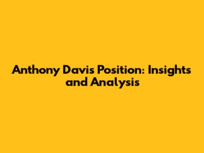 Anthony Davis Position: Insights And Analysis