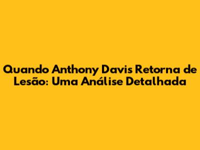 Previsão de Retorno de Anthony Davis: O Que Esperar