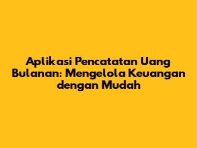 Aplikasi Pencatatan Uang Bulanan: Solusi Cerdas Untuk Keuanganmu