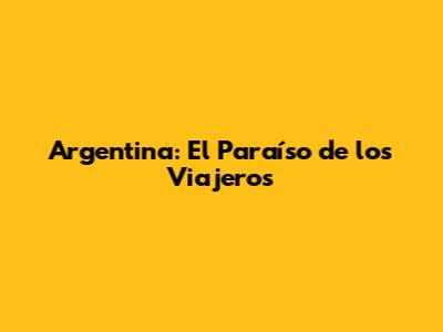 Argentina: El Paraíso De Los Viajeros