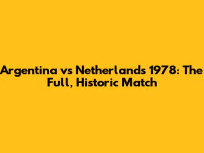 Argentina Vs Netherlands 1978: The Full, Historic Match