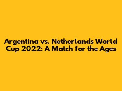Hey guys, let's dive into one of the most electrifying matches of the 2022 World Cup – the Argentina vs. Netherlands showdown! This quarter-final clash wasn't just a game; it was a rollercoaster of emotions, a tactical chess match, and a display of sheer grit. If you missed it, or if you're just looking to relive the magic, buckle up, because we're about to break down everything that made this match so unforgettable. From the pre-match buzz to the nail-biting penalty shootout, we'll cover it all.