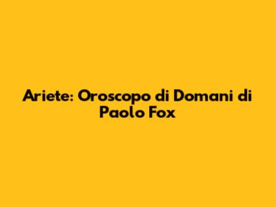 Ariete: Oroscopo Di Domani Di Paolo Fox
