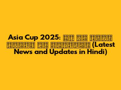 Asia Cup 2025: Latest News & Updates In Hindi