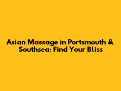 To help you get started, here are a few popular spots for Asian massage in Portsmouth and Southsea. Remember to do your own research and read reviews before booking an appointment to ensure they meet your specific needs.