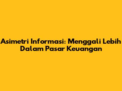 Asimetri Informasi Di Pasar Keuangan: Dampak Dan Solusi