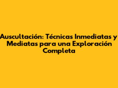 Auscultación: Técnicas Inmediatas Y Mediatas Para Una Exploración Completa